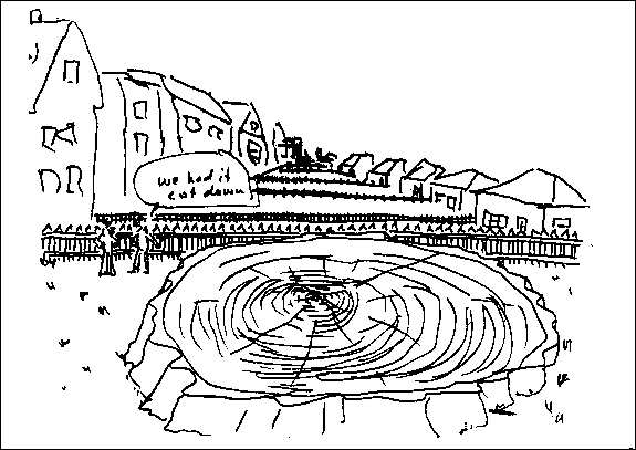 In the 19th Century saplings of the Sequoia tree of California were transplanted to England. Today they are over a hundred feet tall, and five feet in diameter. If I plant one now, the way I figure, it will be 50 to 60 feet tall before I die, which is twice the height of my house, which is the tallest building on this block. The cost of cutting it down would become increasingly prohibitive as time went on. It would thus have a chance of survival, and might just grow to it's full 400 foot height - over the next 3500 years.